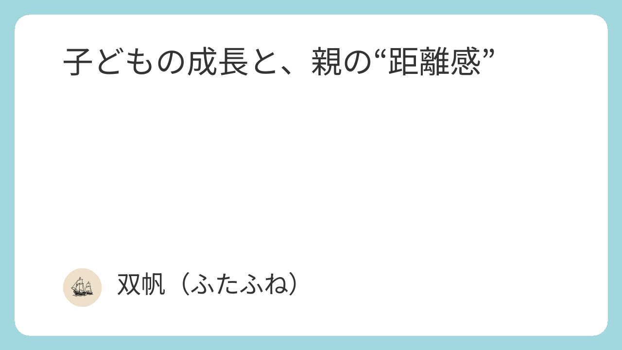 そしてこの課題は、手探りをしながら、子どもとの距離感を少しずつ見つけていくしかないのだろうと感じます。