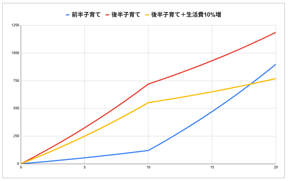 私はというと、収入が同じであれば、単にタイミングの問題であって、最終的な着地はそれほど変わらないのではないか、と考えています。