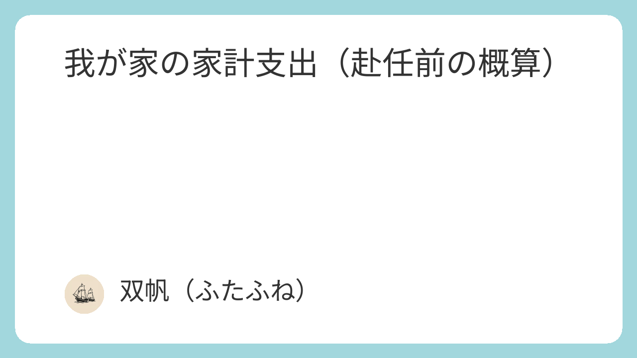 赴任前の情報にはなりますが、我が家の基本的な支出を概算でまとめ、生活感を共有しておきたいと思います。