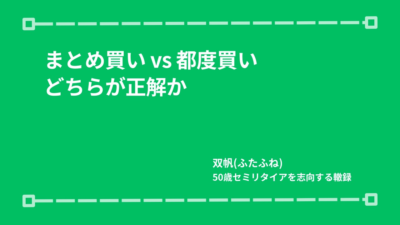 それでもなお、私の体感ではまとめ買いのほうが優位になりやすい。