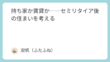 今の住宅については、セミリタイアの時点で売却するルートがほぼ確定しています。