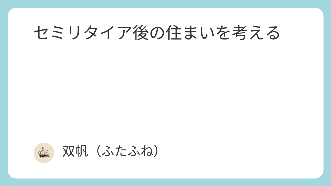 住まいもまた、セミリタイア計画の一部として、時間をかけて考えていくものと捉えたいと思います。