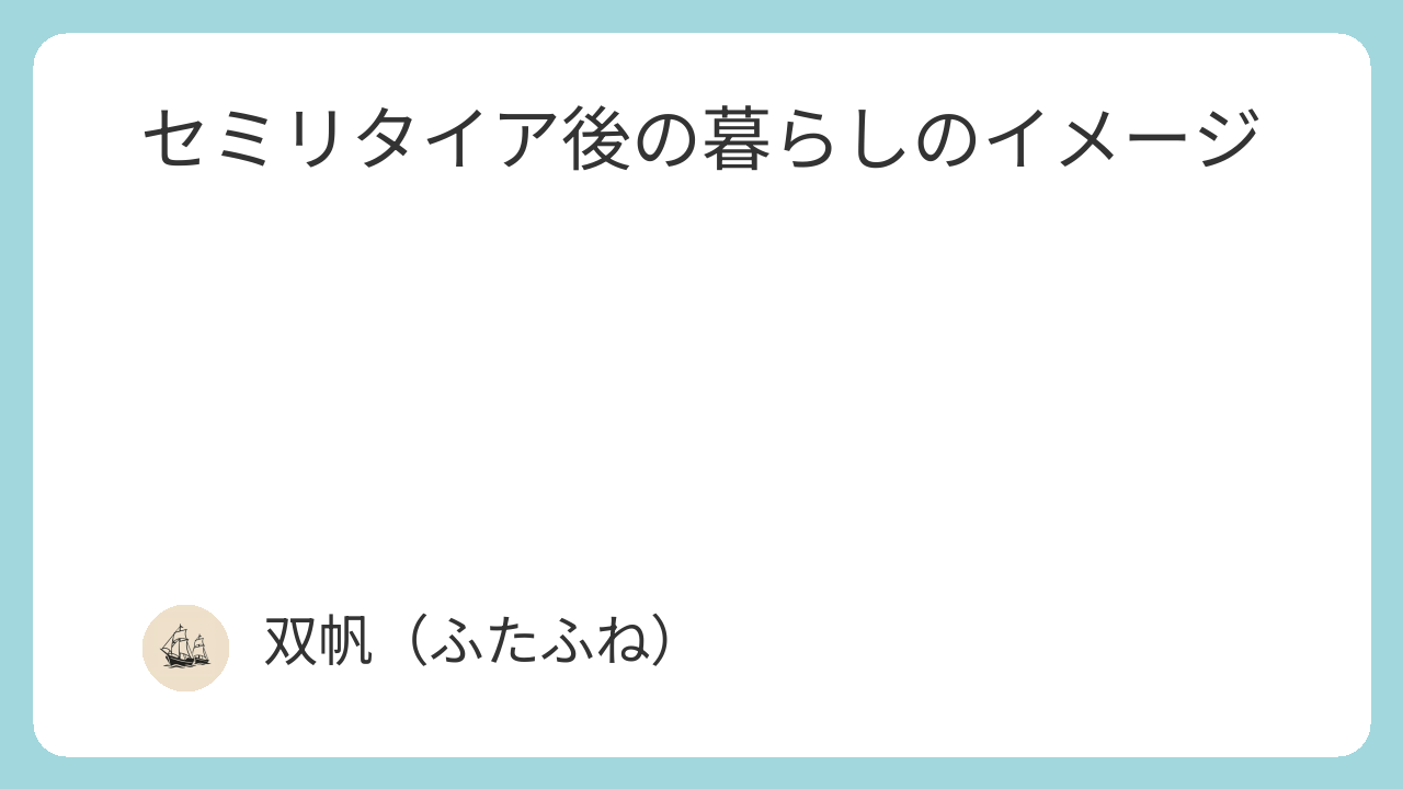 セミリタイアを考えている方にとっても、自分ならどんな暮らしをしたいかを想像してみるきっかけになれば嬉しいです。