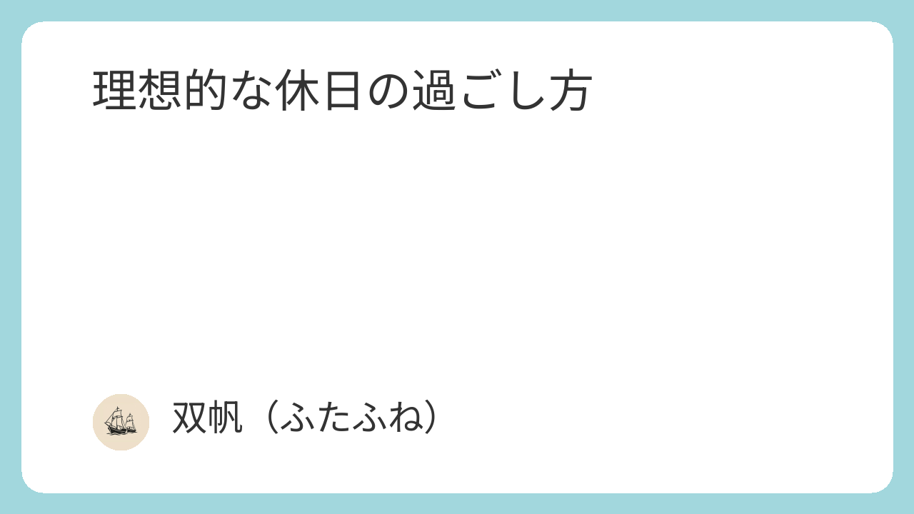 今回は、そんな“理想的な休日”の過ごし方を、少し紹介したいと思います。