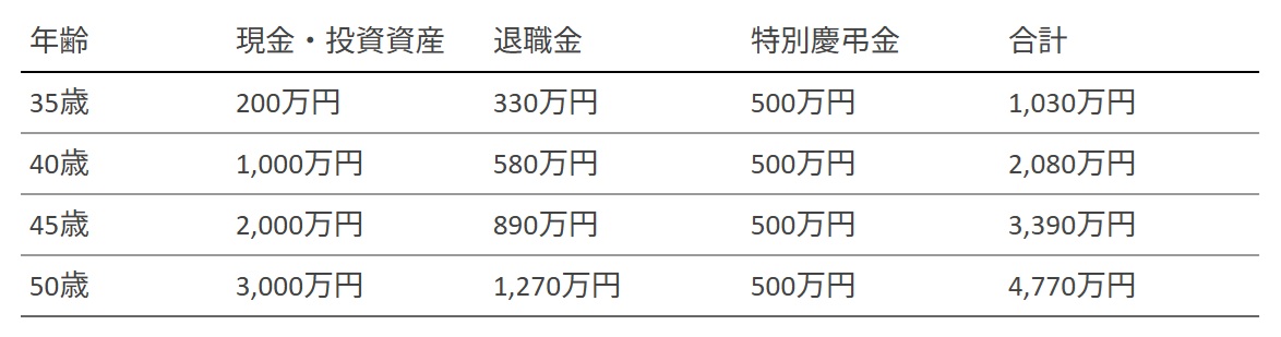 退職金は、現職の制度に基づき、各年齢時点での支給見込み額を反映しています。