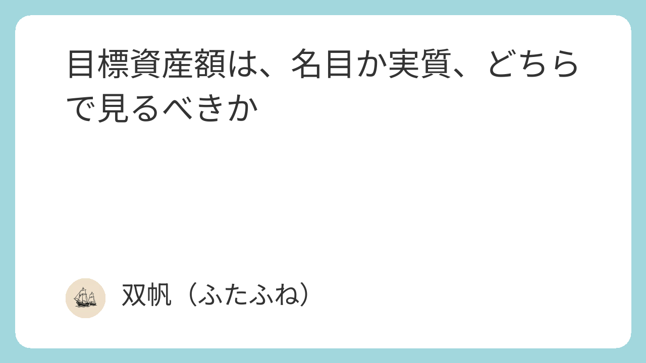 名目と実質のどちらで目標資産額を考えるかは、数字の正確さだけでなく、受け取り方の“感覚”に影響するように思います。