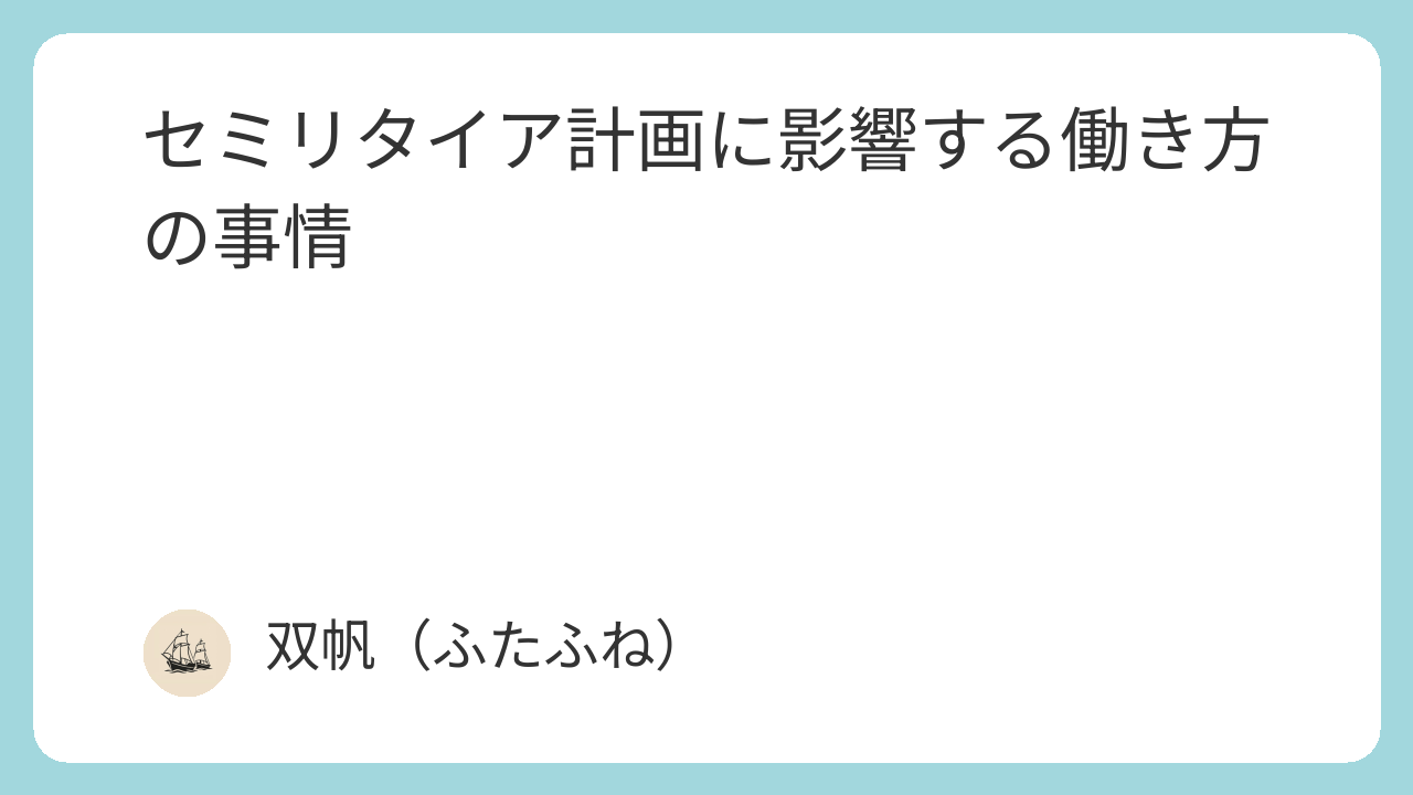 セミリタイア計画を考える上で、自分の働き方の事情は切り離せません。