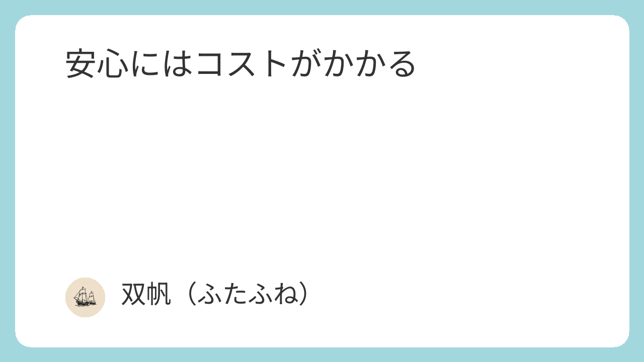 そしてその背景には、「安心にはコストがかかる」 という現実がある、と考えています。