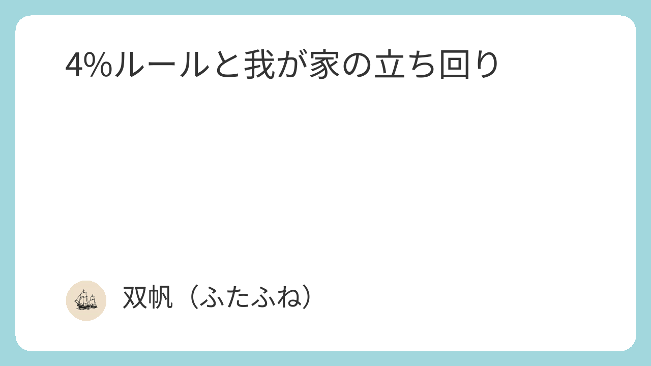 4%ルールを絶対視するのではなく、我が家に合わせて応用することで、不安を抑えつつ現実的にセミリタイアを進められると考えています。