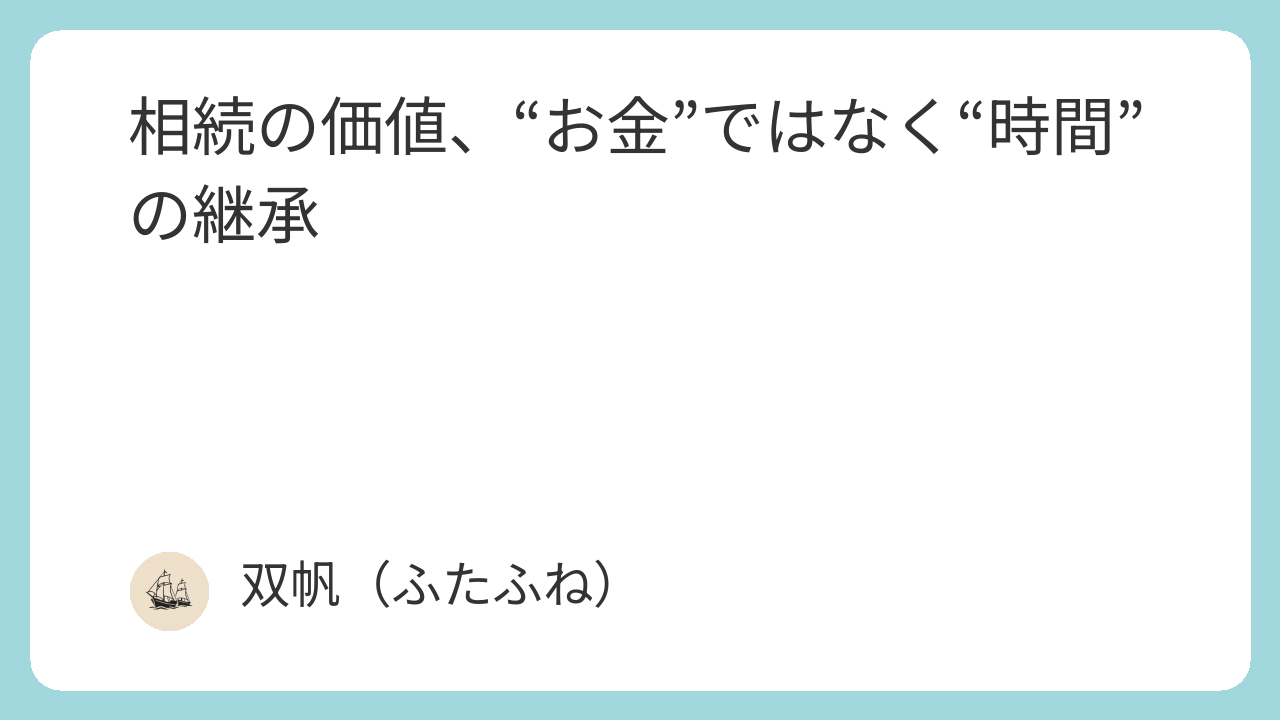 今回は、“お金ではなく時間を継承する”という視点から、相続のあり方を少し考えてみたいと思います。